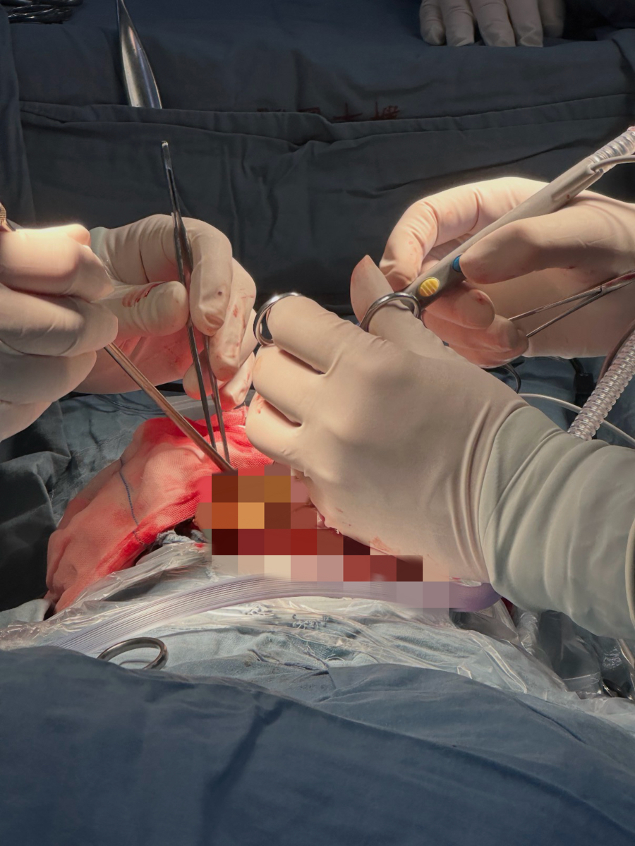 手术中,王晓强主任团队在显微镜下逐层分离粘连的神经纤维,小心翼翼地切除脂肪瘤样组织,同时以水密性缝合技术重建硬脊膜,将突出的脊膜完整还纳至椎管内,彻底解除脊髓栓系;随后,整形外科接力上阵,利用皮瓣移植技术,精准覆盖腰骶部的缺损区域,重建椎管完整性,确保术后伤口顺利愈合,减少感染风险。