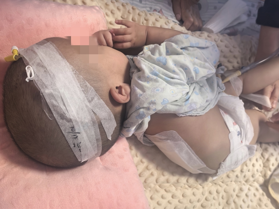 考虑到小马才刚刚1岁、身体耐受度低,且两种病症需分步解决,团队最终确定 “先控脑积水、再修脊膜膨出” 的分期手术策略,每一步操作都如同在 “细丝上舞蹈”,考验着团队的专业与耐心。